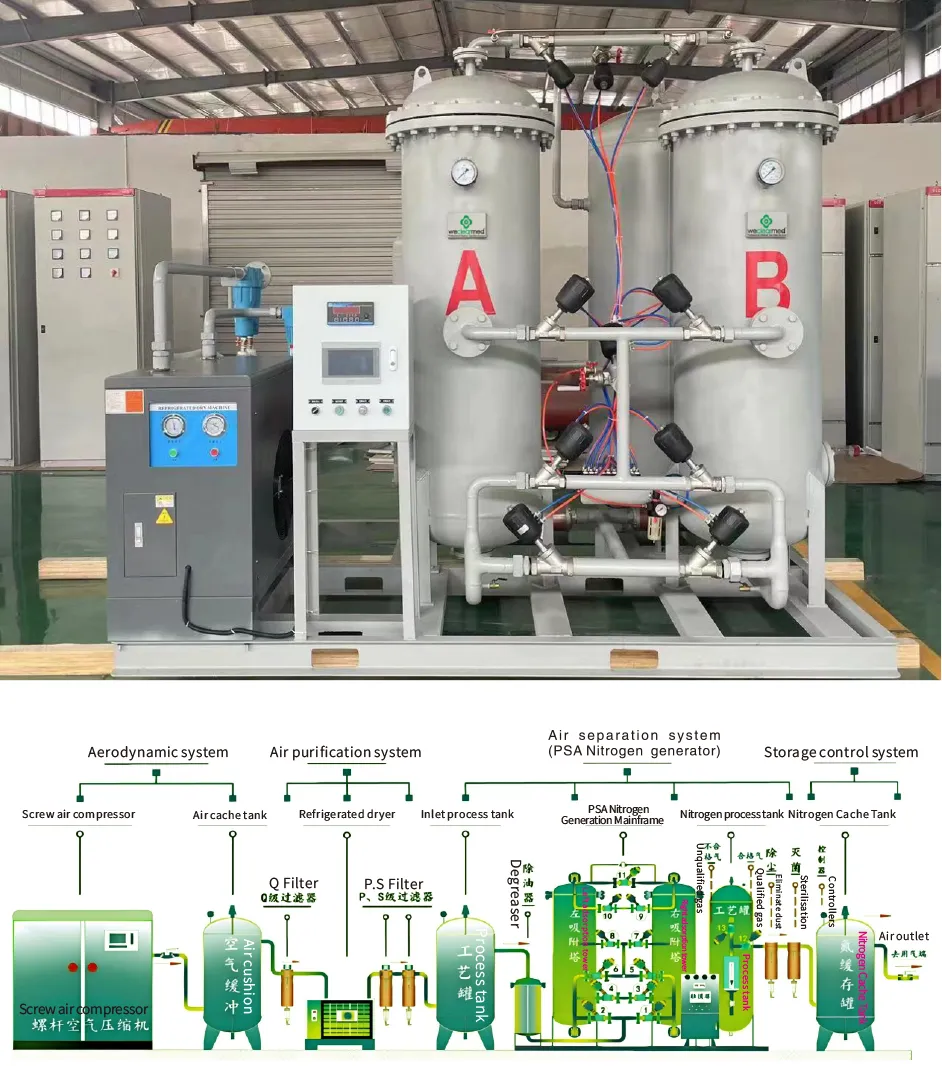 Suur puhtus väike vedela lämmastikuseadmed võivad kasutada ettepoole ja vastupidist voolu; Klientide erinevate rõhutaseme nõuete täitmiseks kasutatakse mitut protsessi korraldamise meetodit, näiteks ühe torni ja topelttorni. Kogu seade saab kasutada alalisvoolu või PLC süsteemi